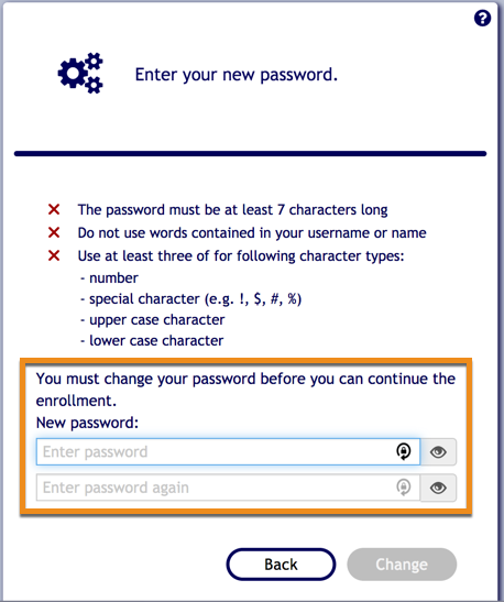 6. Type in your new password. Please note the following password requirements: