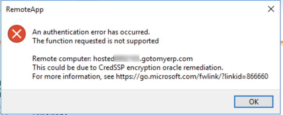 Receiving a RemoteApp Disconnected upon connection