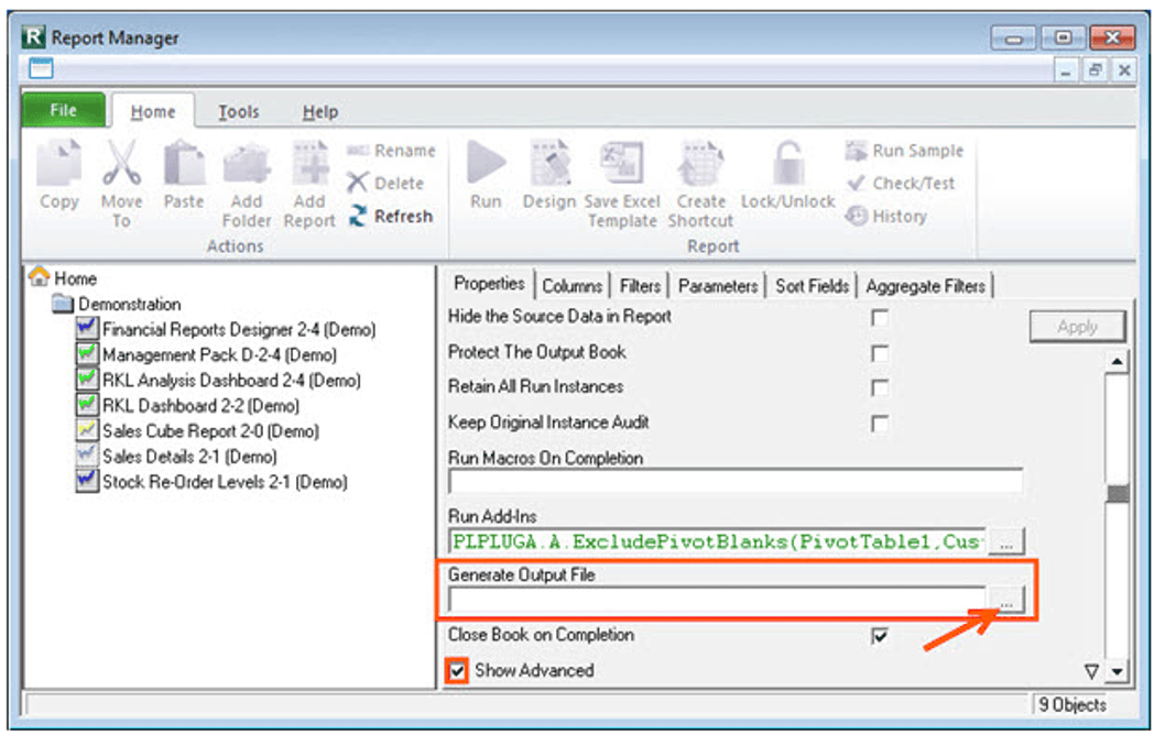 - Scheduled reports must use Generate Output File or Retain All Run Instances.
